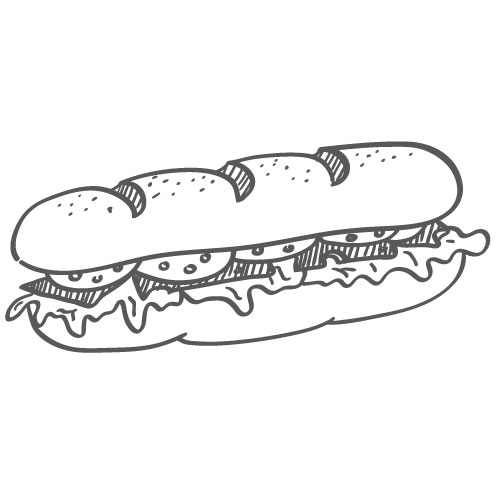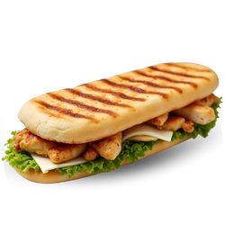 Warm stokbrood belegd met kip, groenten en saus naar keuze