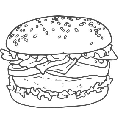 Broodje met frietjes, sla, gekookte ui, saus en vlees naar keuze: Kip / Schnitzel / Vis / Mexicano / Hamburger